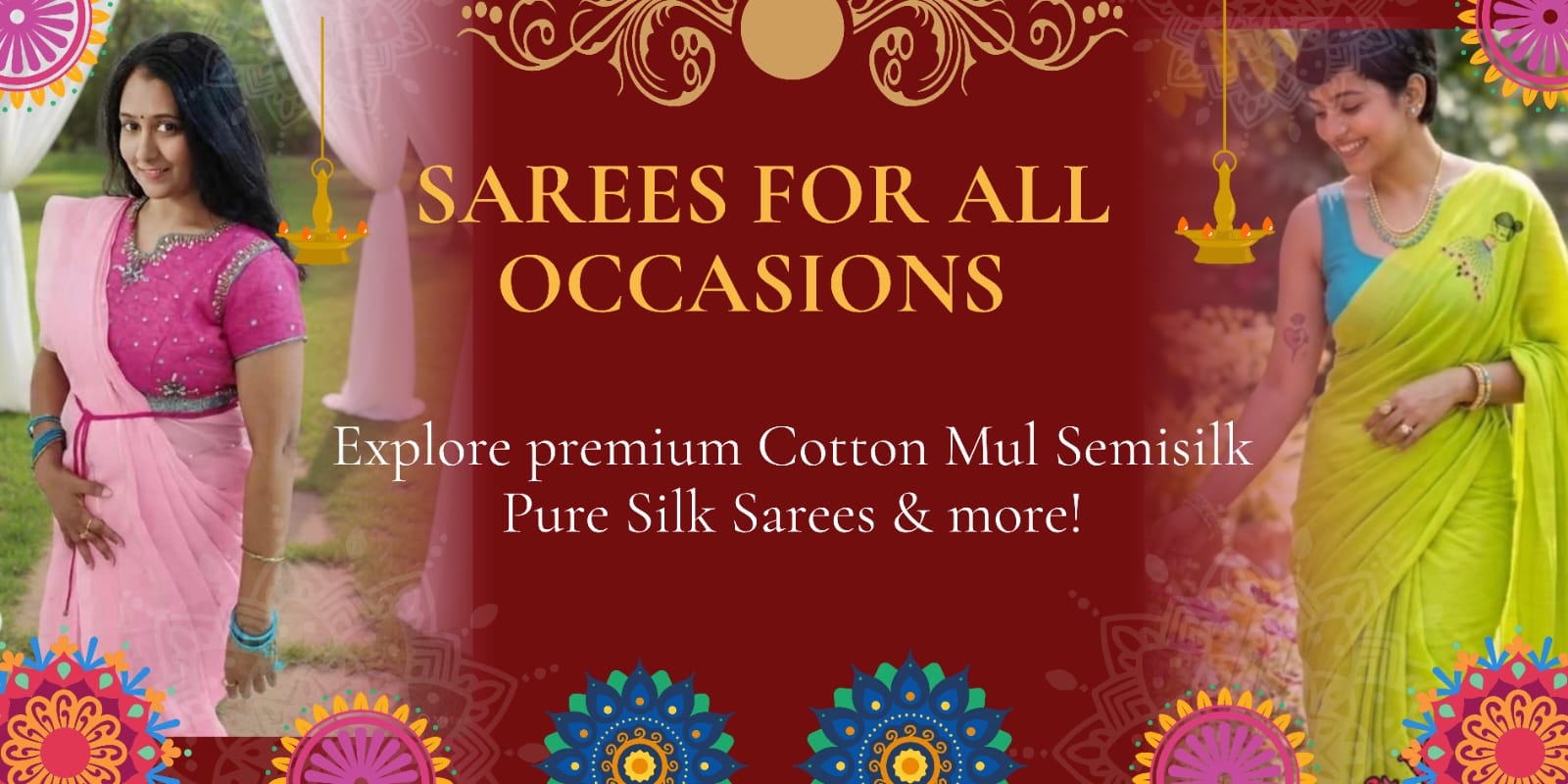 Rich in color and crafted to last, each saree comes with a running blouse and can be treasured for generations with proper care.